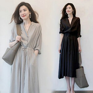 シフォン ワンピース 半袖 長袖 夏用 夏服 レディース ゆったり ぽっちゃり リゾートワンピ 無地 7分袖あり ミモレ丈ワンピース aライン 大きいサイズ ママ 母の日 発表会 2次会 40代 50代 夏ワンピ オシャレ 韓国風 M/L/XL/2XL/3XL/4XL/ グレー ブラック dd075x1x1x1