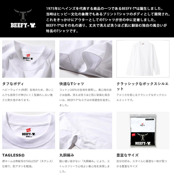 HANES ヘインズ 長袖 Tシャツ ビーフィー BEEFY パックT ロンT メンズ レディース ヘヴィーウェイト 肉厚 白T アメリカンボディ TEE ティーシャツ 無地 シンプル コスパ ホワイト 白 ブラック 黒 ネイビー グレー H5186