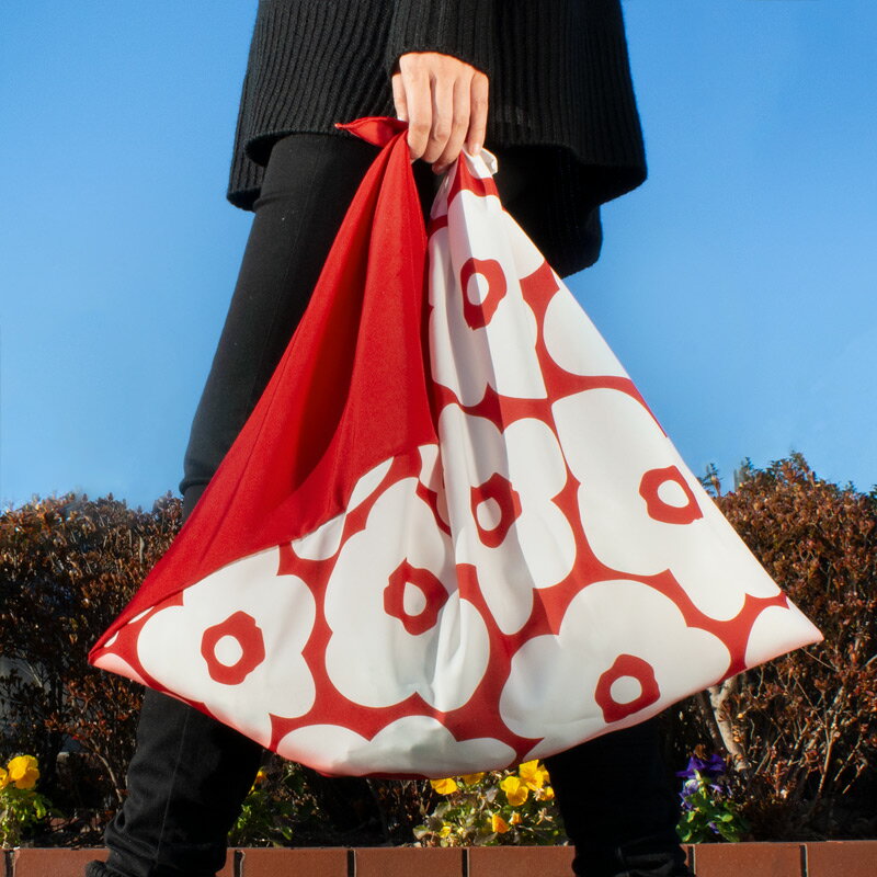 エコバッグ 洗える 撥水あづま袋『AZUMA』 椿(赤) 水を弾く コンパクト 折りたたみ 和 モダン 吾妻袋 東袋 おしゃれ レトロ あずま袋 風呂敷バッグ 水をはじく 巾着 大容量 洗えるエコバッグ プレゼント 贈り物 ギフト はっ水 鞄 サブバッグ