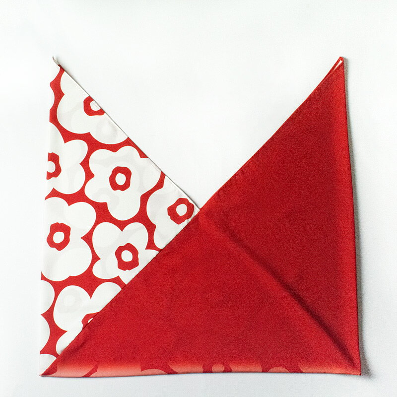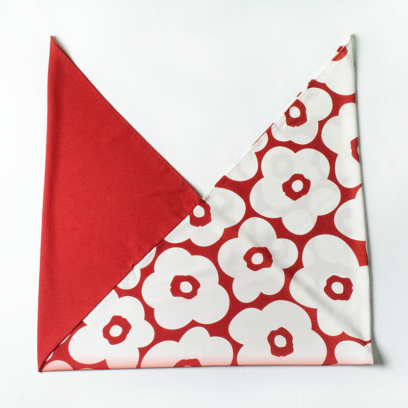 カラー 椿(赤)大柄の花柄を無地と対比するように配置。