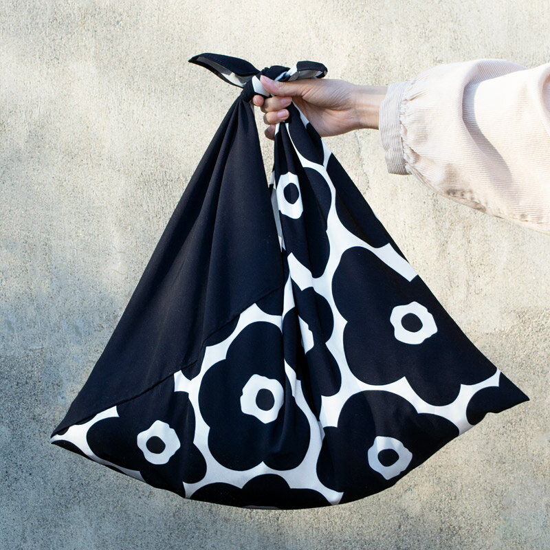 エコバッグ 洗える 撥水あづま袋『AZUMA』 椿(黒) 水を弾く コンパクト 折りたたみ 和 モダン 吾妻袋 東袋 おしゃれ レトロ あずま袋 風呂敷バッグ 水をはじく 巾着 大容量 洗えるエコバッグ プレゼント 贈り物 ギフト はっ水 鞄 サブバッグ
