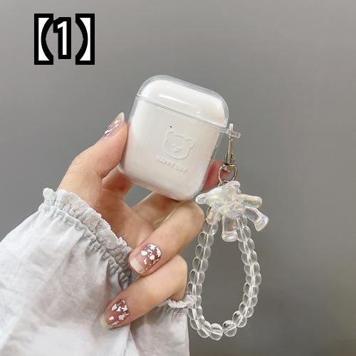 AirPodsケースカバー 第1/2世代 AirPods Pro ins シンプルなクマ かわいい保護 シェル 透明 クリエイティブ ソフトシェル 女性のファッション イヤホンボックス保護カバー
