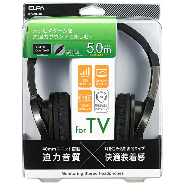 ELPA RD-OH50 密閉型ヘッドホン 3m+延長2m【在庫目安:お取り寄せ】| AV機器 オーバーヘッドヘッドホン オーバーヘッドヘッドフォン オーバーヘッド ヘッドフォン ヘッドホン イヤフォン イヤホン テレビ 音楽 ラジオ 音質