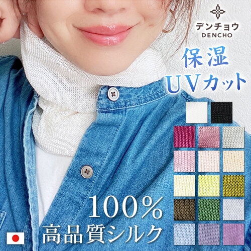 デンチョウ 敏感肌 ネックカバー ネックウォーマー シルク 100% UV uvカット 冷感 レディース メンズ 敬老の日 夏 薄手 ネック スカーフ 紫外線 日焼け 冷房 冷え 対策 保湿 マスク 肌に優しい おしゃれ かわいい お休み おやすみ 日本製 就寝 寝る時 プレゼント ギフト 絹