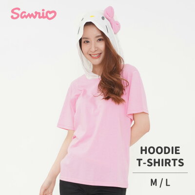 サンリオ キャラクター キティ フーディ サマー Tシャツ tシャツ レディース 半袖 フード付き 薄手 夏 M L なりきり コス ゆったり カジュアル 可愛い ルームウェア 部屋着 パジャマ ねまき 寝間着 部屋 おうち着 キティちゃん ギフト プレゼント リラックス s-sz-6j534