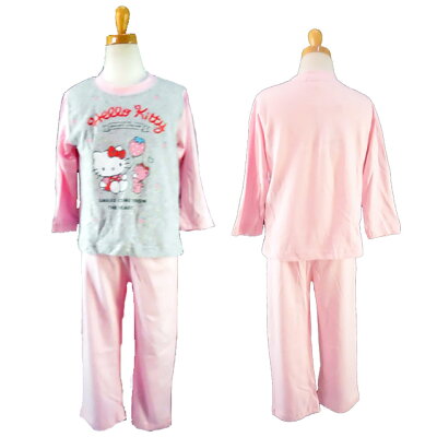 【追跡可能メール便(198円)1点まで可】裏起毛 スムース パジャマ キティ 長袖 サンリオ ハローキティ ジュニア ヤング ガールズ レディース 婦人 大人 女性 秋用 冬用 キャラクター ルームウェア ナイトウェア トレーナースーツ サザック 薄手 SAN-1198