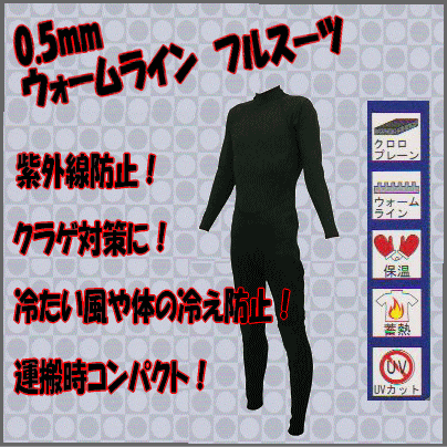 ウエットスーツのアンダーに防寒インナー 0.5mm ウォームライン フルスーツ(後ろファスナー付) サイズ各種 クロロプレーン/ウォームライン/保温/蓄熱/UVカット/ ウォームラインフルスーツ 【代引不可】